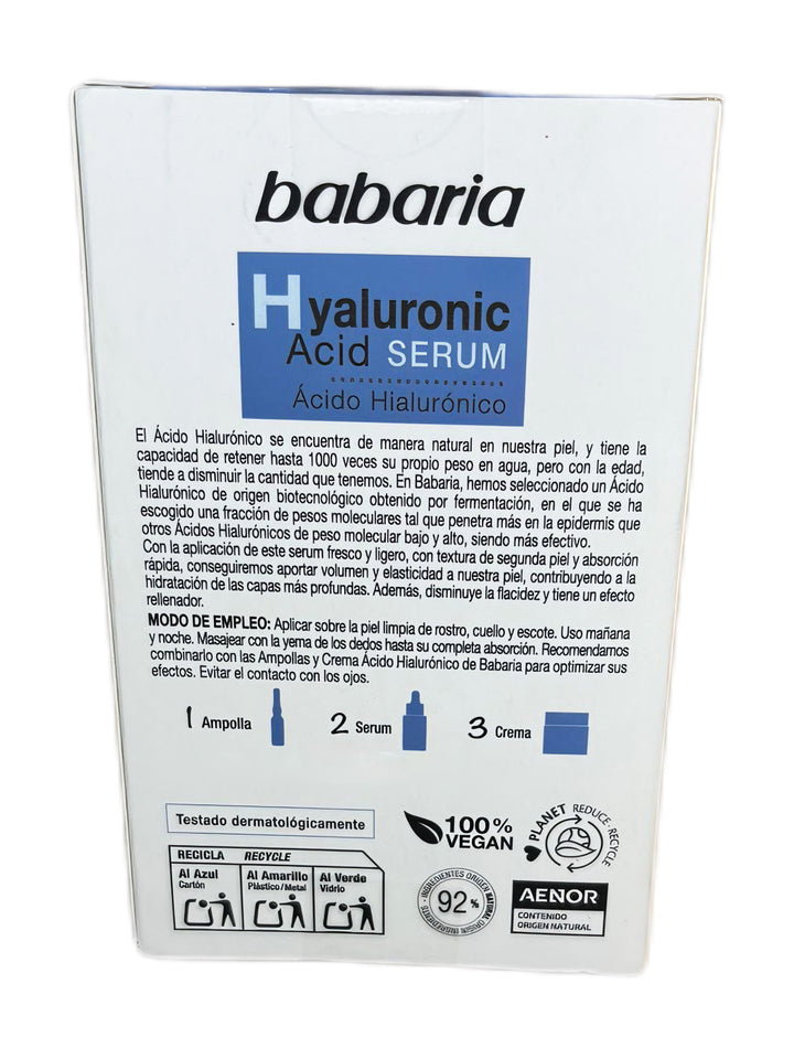Babaria Sérum Facial con Ácido Hialurónico – 30 ml (Importación)