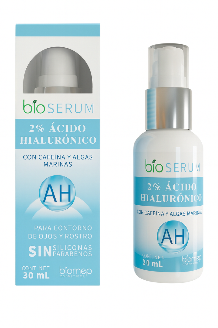 Revitaliza tu piel con BioSerum 2% Ácido Hialurónico, un tratamiento facial diseñado para hidratar profundamente, reducir líneas finas y mejorar la firmeza de la piel. Su fórmula con cafeína y algas marinas ayuda a disminuir la apariencia de ojeras y bolsas, dejando tu rostro más luminoso y descansado.