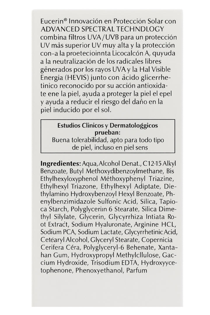 Protege tu piel diariamente con Eucerin Hydro Fluid FPS 50+, un protector solar facial de textura ultra ligera que ofrece muy alta protección contra rayos UVA/UVB. Su fórmula de rápida absorción es ideal para todo tipo de piel, incluso las sensibles, brindando un acabado fresco y sin sensación grasa.